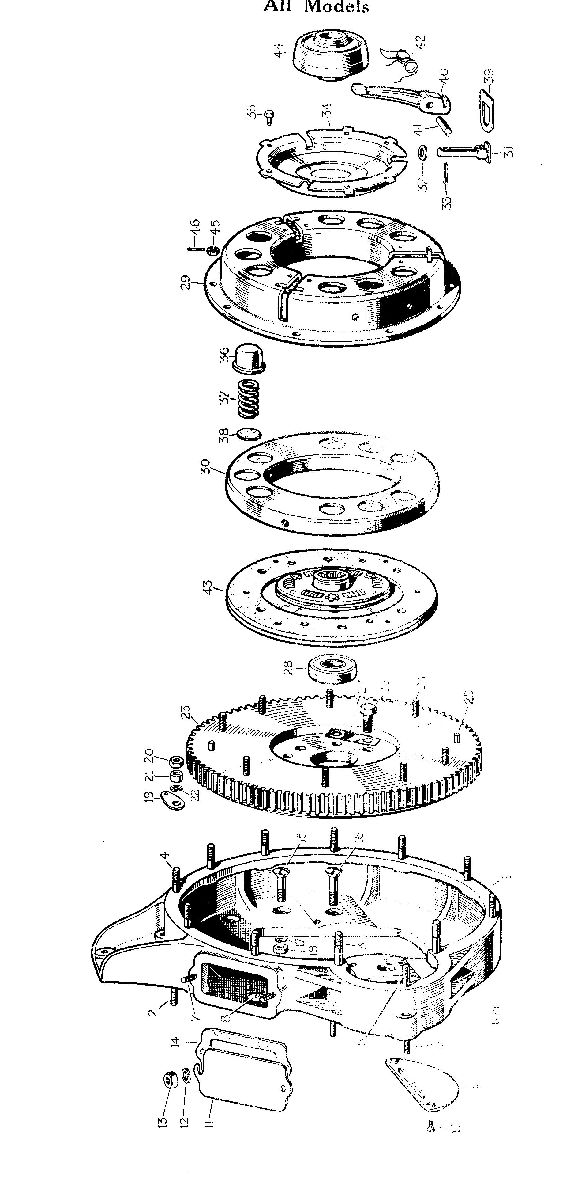מצמד: תוצרת רובר לפי פטנט של רובר. שלשה מנופים מסודרים ברווחים של 120 מעלות זה מזה על מכסה המצמד ומושכים מבחוץ את צלחת המצמד שבתוכו, כאשר הם נלחצים על ידי מיסב המצמד. אמנות לכוון את הדבר הזה, הנוטה להתפרק מפעם לפעם בהתפרצות מחרידה. הוחלף (על ידי) במרוצת השנים על ידי מצמד דיאפרגמה של פורד, שעובד לו באדישות מזה שנים רבות וללא צורך בשום כוונון.