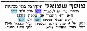 מודעת שמואל בעיתון "דבר" 1957.
