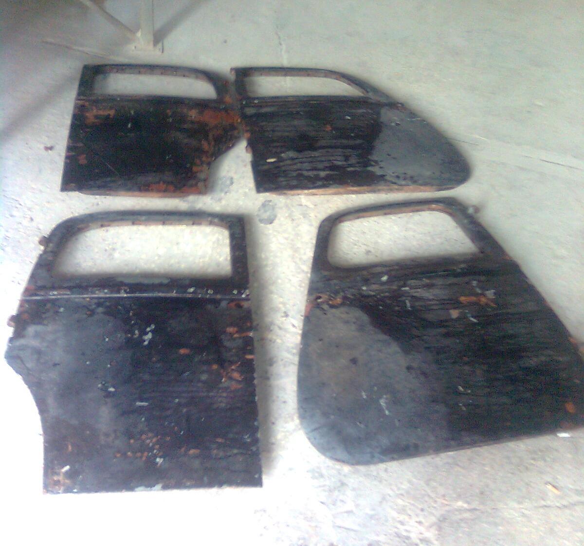צבע מתקלף ומתפורר, שכבות עבות של חומר פחחים – ומי יודע מה מסתתר מאחוריהם. אורי התלבט זמן רב בשאלה אם למסור את הדלתות לניקוי חול או לא. מצד אחד, בלעדיו צפויה עבודה מתישה ממושכת ויקרה – הסרת הנ"ל במברשת פלדה; מאידך יש סכנה שניקוי חול יעוות את הדלתות ויגרום לנזק בלתי הפיך. הדלת עצמה היא למעשה קופסת פח בעלת דופן קידמית, דופן אחורית וקירות. כך נראה צידה השני, צד פנים הרכב של דלת אחורית ימין: