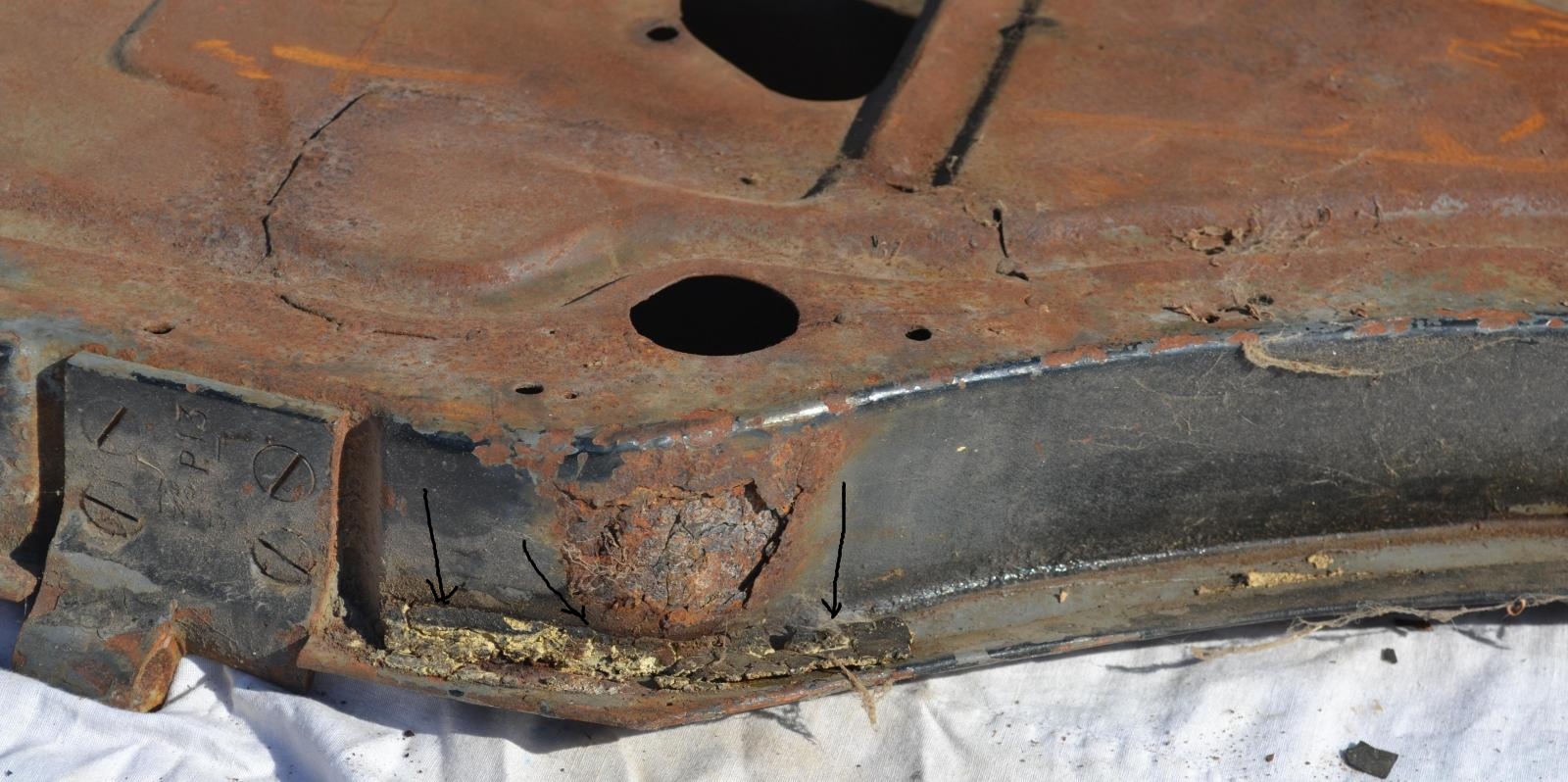 מבט בוחן על הדלת האחורית השמאלית מראה כי היא עברה כבר תהליכי השתלה בעבר (ראו חיצים):