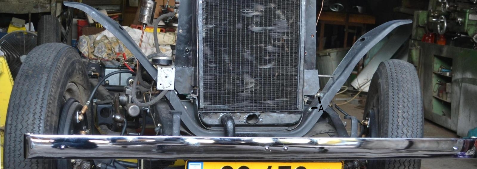 ניתן לראות כי הרדיאטור נוטה מעט ימינה, וכי גובהי ידי-הכנף אינם שווים. גובהם ניתן לכיוונון, ואחריו נועלים אותם למצב הרצוי על ידי הידוק הברגים (A). וכך זה נראה לאחר ההתאמות הללו: