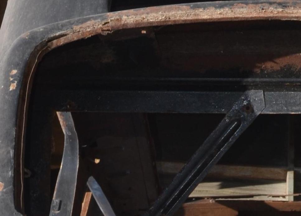 גם מכסה הגלגל הרזרבי התלונן מרה על חלודה וחלקי עץ מכורסמים: