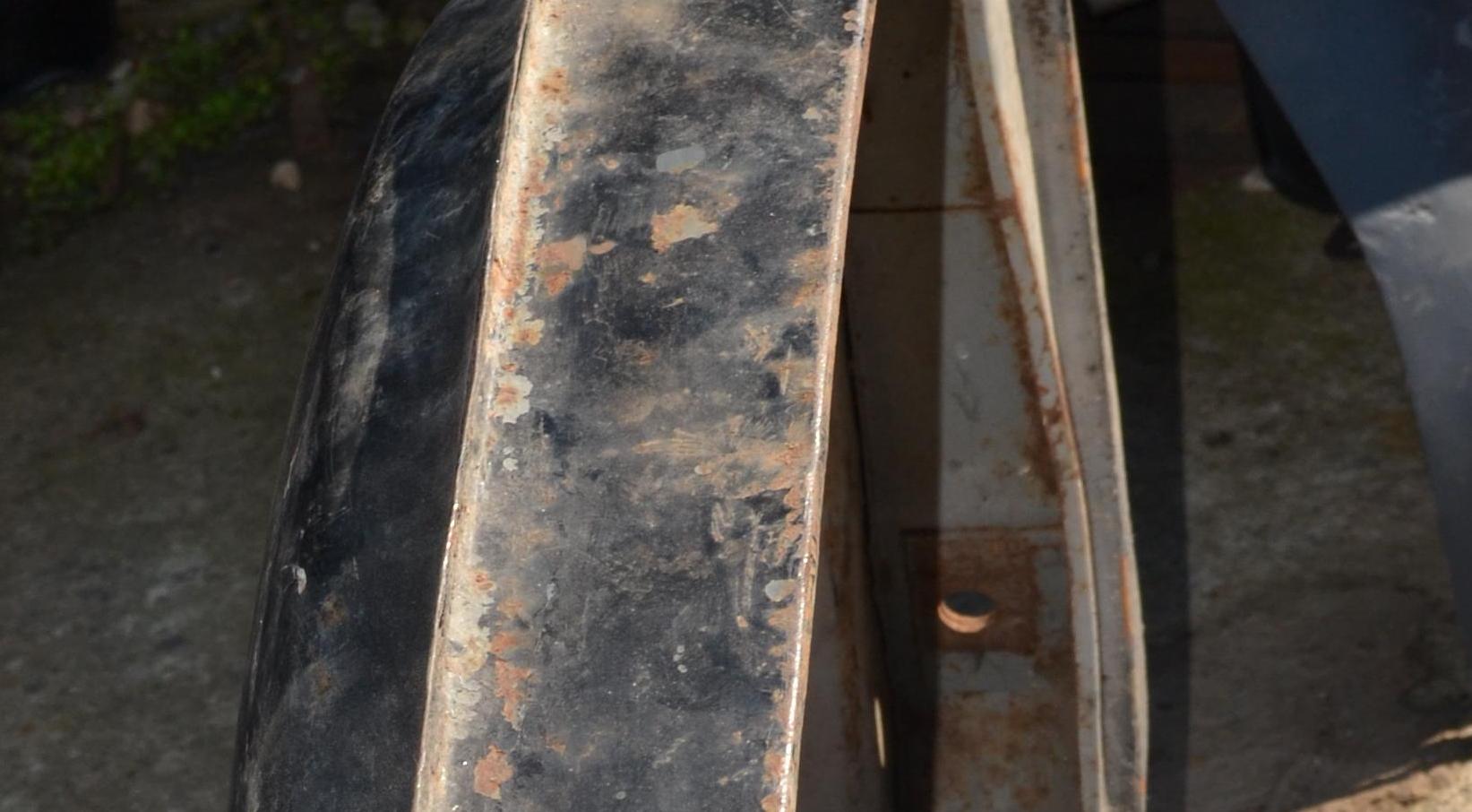 Spare wheel cover repaired and galvanized. Later it had been poweder coated black, and the wooden sections re-made