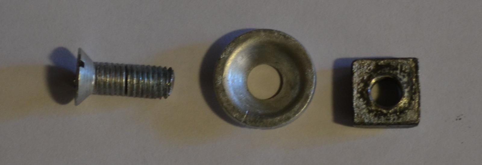 שימו לב למתאם האורגינלי בין בסיס המושב וגב המושב. הקטע המתאגר היחד בהרכבה היה השגת הברגים המתאימים והאותנטיים (כלומר בעלי תבריג BSF). מדובר בברגי 1/4 בעלי ראש countersunk מחורץ, ואומים מרובעים, לשיקוע בעץ, בעלי ההברגה המתאימה. ברגים מתאימים עשויים מפלב"ם הצלחתי להשיג באנגליה – אולם את האומים אי-אפשר להשיג for love or money ונאלצתי, בעבודת נמלים, לשקם את האומים המשומשים שעברו את תהליך הסרת החלודה והגילוון הרגיל ולאחר מכן נוקה התבריג שלהם באמצעות מברז 1/4 BSF.