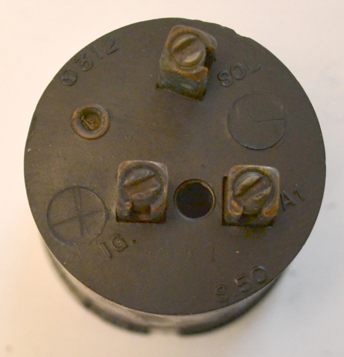 שלושת הברגים מסומנים בכיתובים SOL (מתחבר לסולנואיד של המתנע – מוליך מס’ 29 בשרטוט) IG דהיינו ignition (מתחבר לסליל ההצתה (באנגלית coil המשובש בארץ ל”כוהל” על ידי מכונאים מדור האידיש – זהו מוליך מס’ 20 בשרטוט) ול A1 הלא הוא הוא ההדק A1 שעל וסת הזרם (מוליך מס’ 24 בשרטוט).