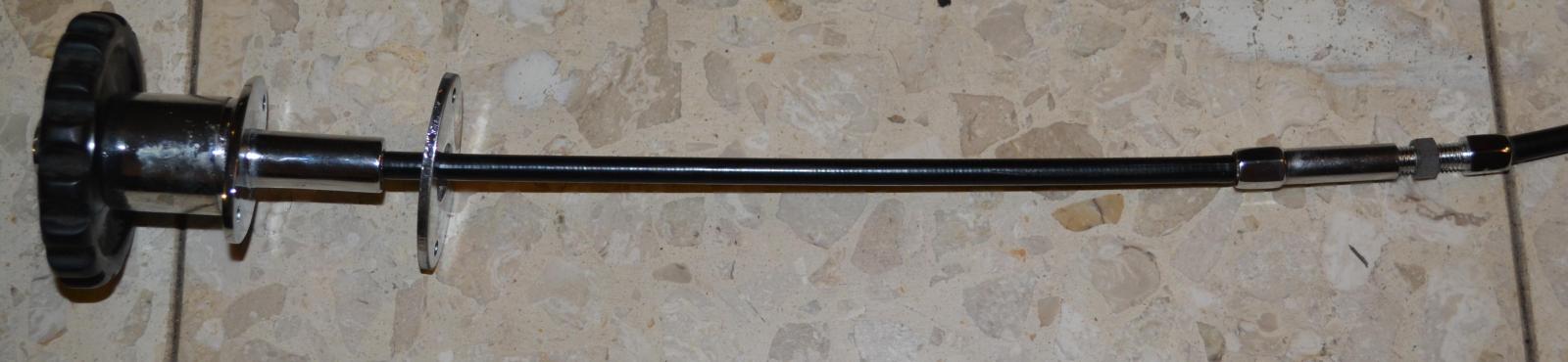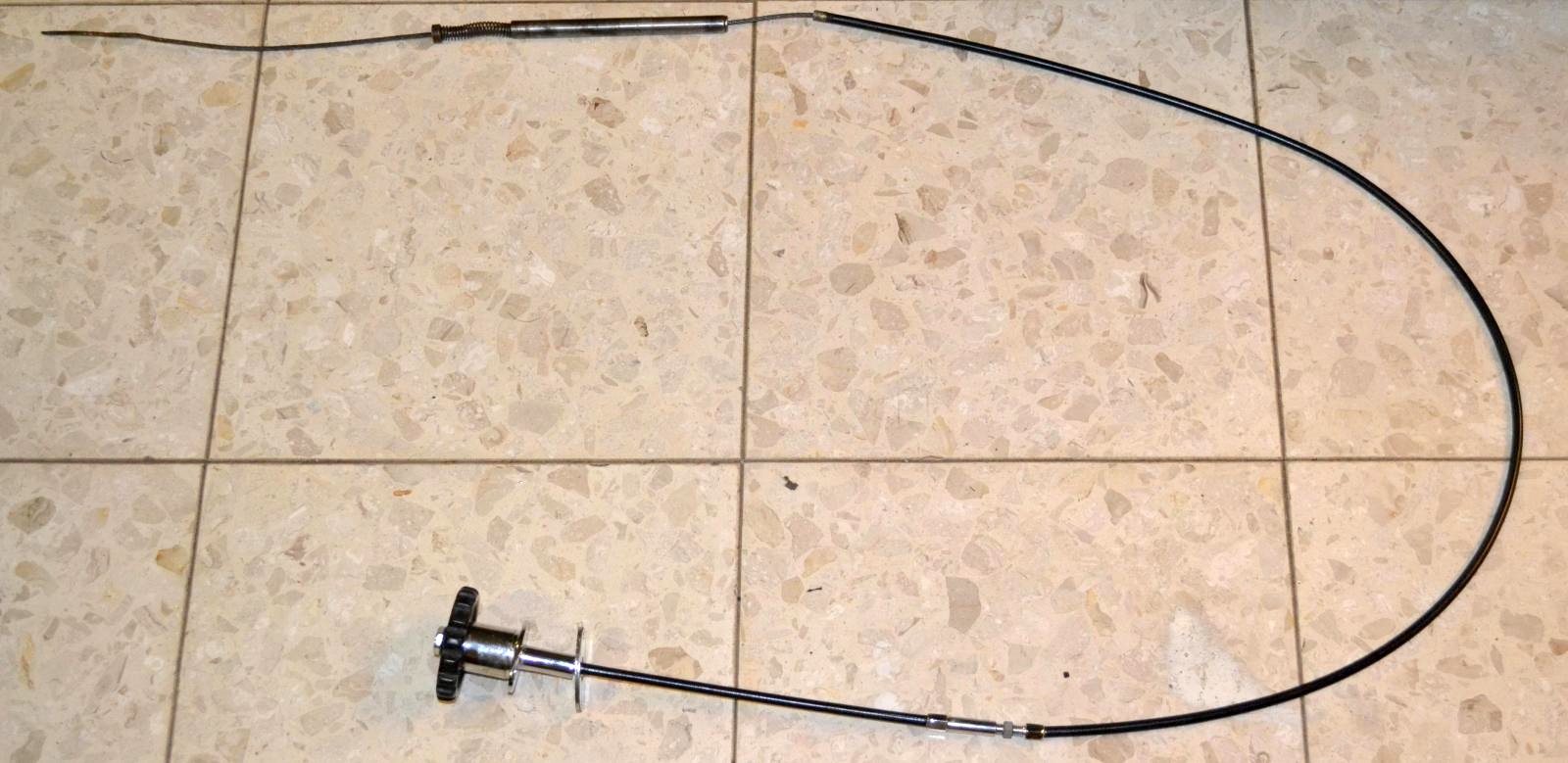 הדבר הראשון שהתברר אחרי פירוק הכבל הנ"ל מהמכונית היה כי הוא תפוס לחלוטין, וכלום בו אינו זז. אבל אחרי הרוויה חוזרת ונשנה בשמן מסיר חלודה הוא התחיל סוף סוף לזוז. את פירוק המכלול לגורמים השלים טינו. המסגרת וחלקיה, פרט לקפיץ, נמסרו לתרשיש לניקוי בחומצה ולגילוון. גם את הכבל והידית, העשויים מפלדה קפיצית ובקליט החלטנו לא לשלוח לטיפול זה, שעלול לקלקל אותם, ובמקום זאת ניקיתי אותם יסודית במברשת פליז וצבעתי בשחור. כך נראו הכבל והידית לפני הניקוי והצביעה