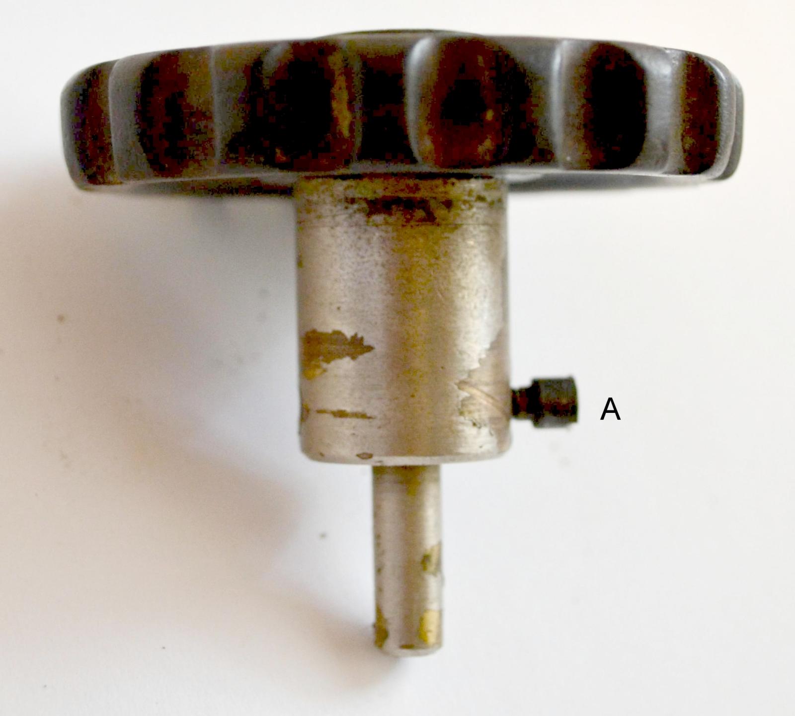 בניצב לציר גלגל הבורר ניתן להבריג בורג בעל ראש עגול (A).