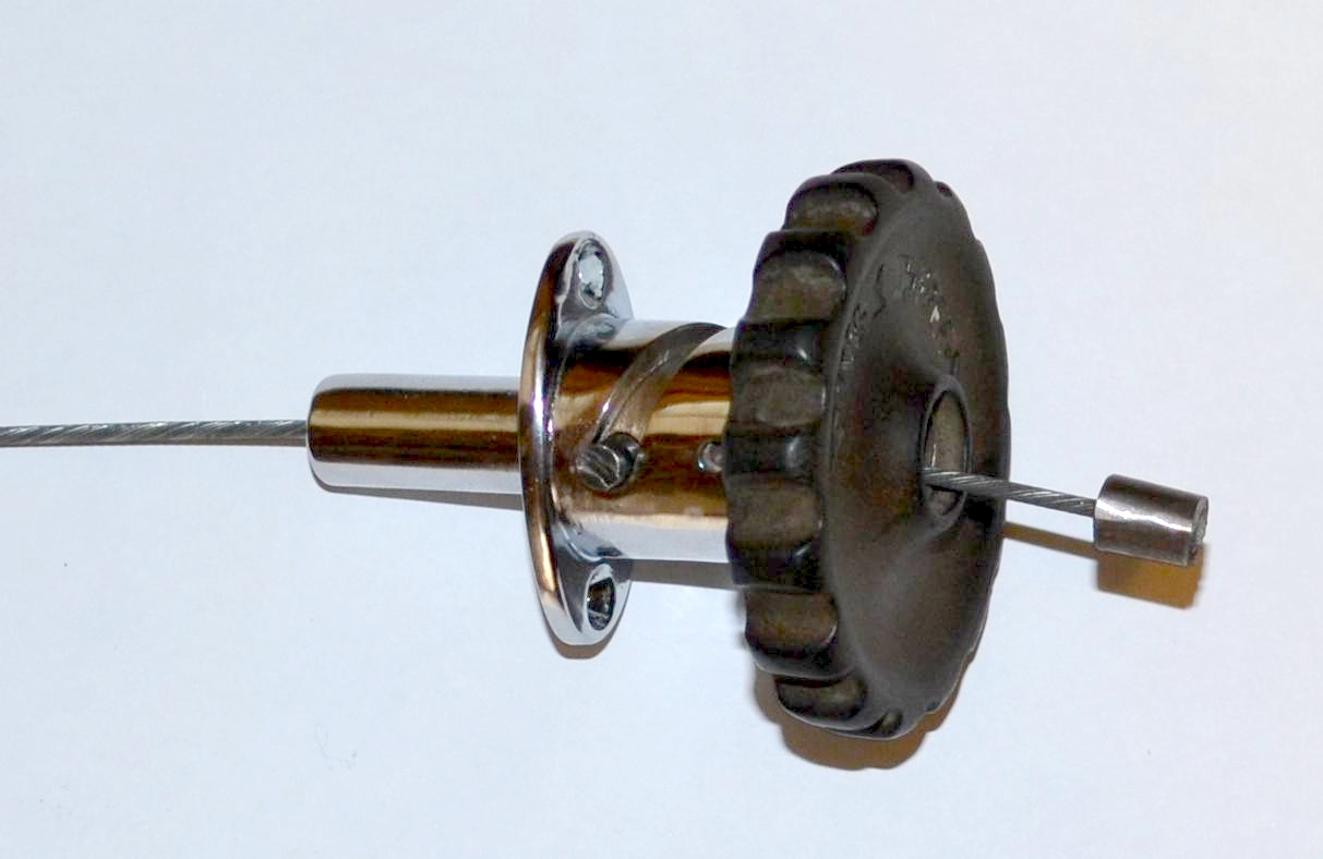 אל תוך הגלגל מושחל הכבל, וכשהגלגל נע בכוון השעון הוא מותח אותו. כשהגלגל נע נגד כוון השעון מחזיר אותו הקפיץ הנמצא במזלג בורר המצבים של ה Free-wheel למקומו. הבורג מצופה הכרום שבימין התמונה למעלה מסתיר ומגן על "ראש" הכבל.