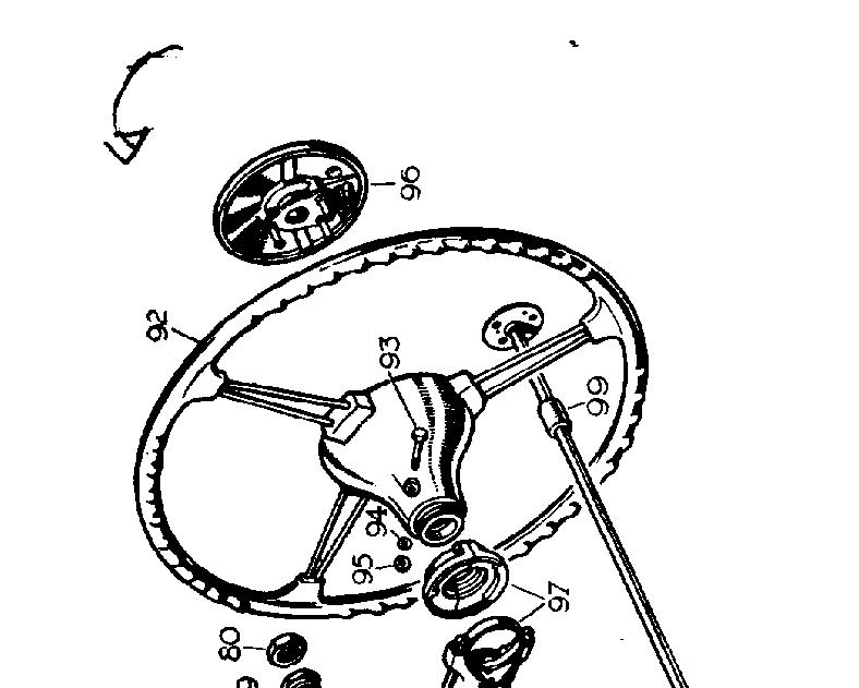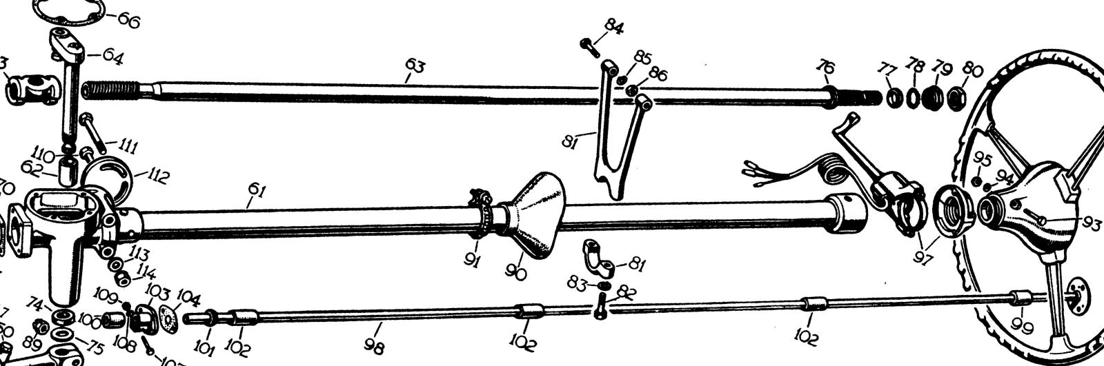 עמוד ההגה (61) החלול שבתוכו מוט ההגה (63) החלול ובתוכו צינור החשמל (98) החלול גם הוא שבתוכו מושחלת צמת הבקרה (שאינה מופיעה בציור).