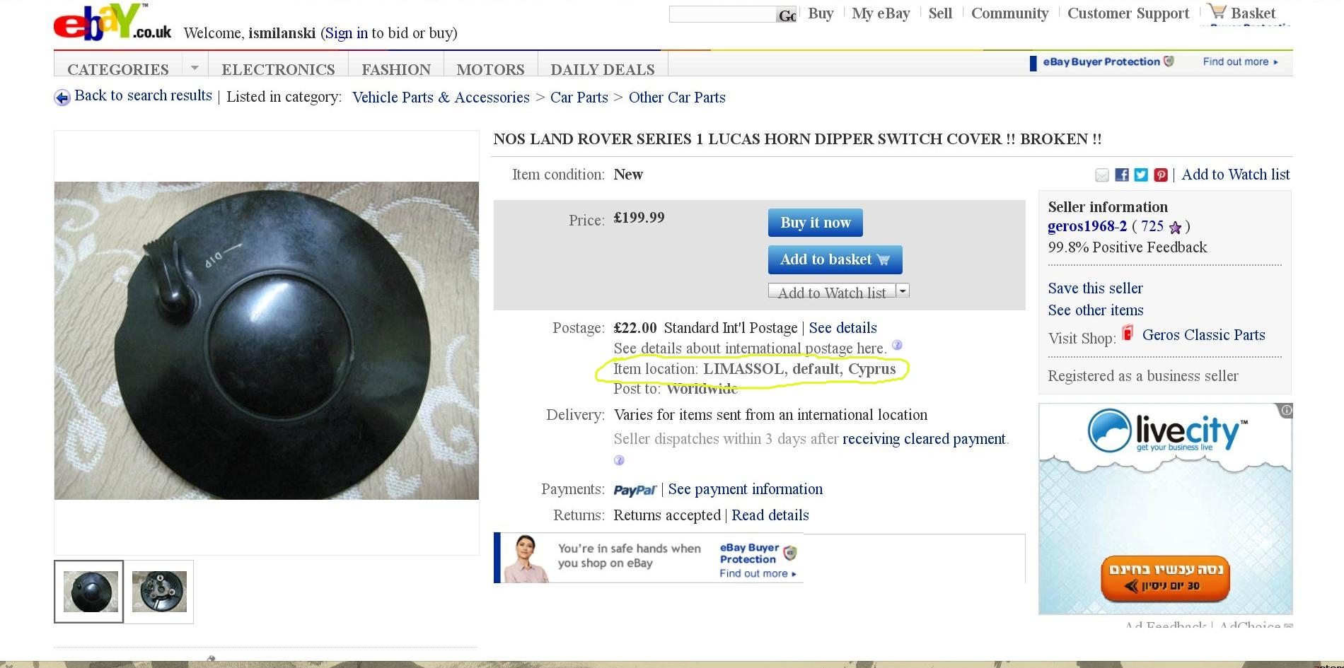 בו מוצע למכירה, מקפריסין, מכלול כזה שבור (את התקינים כבר מכרו כנראה, ובמחיר גבוה בהרבה).