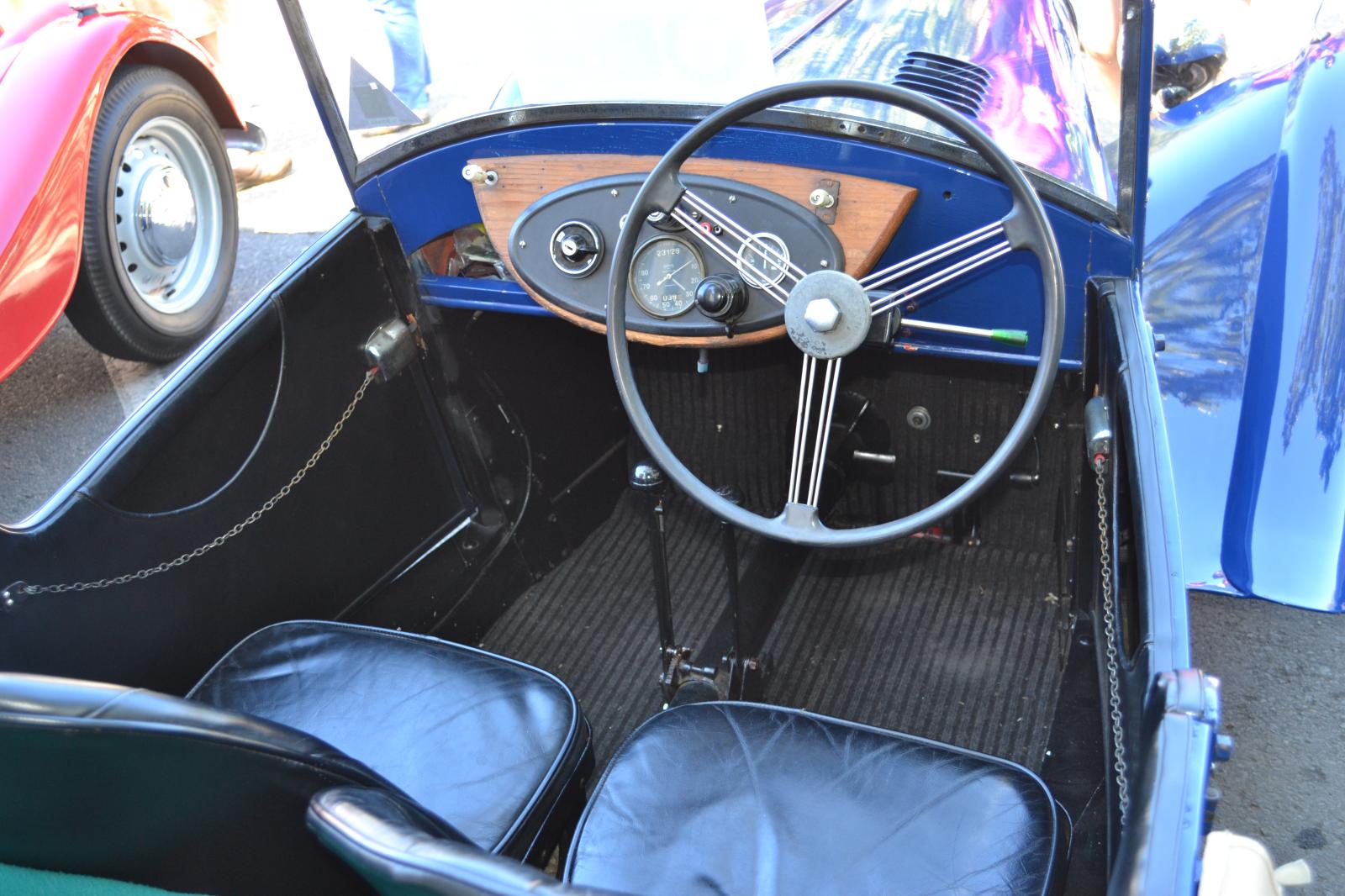 שימו לב לידית האיתות המורכבת על מוט ההגה. זה אינו ציוד אורגינלי, אלא תוספת מאוחרת כדי להתמודד עם תנועה מודרנית, בפרט שלרכב הגה ימני. וכך נראה הרכב מאחור: