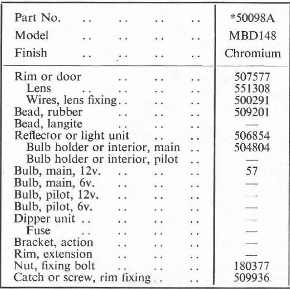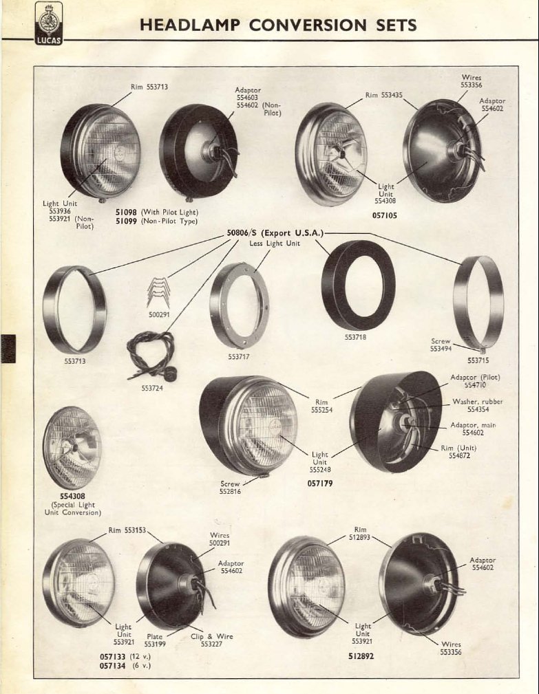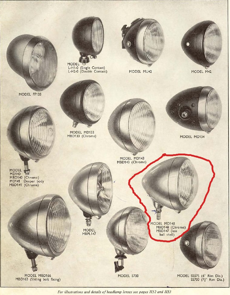 (הפנס שלנו מוקף בקו אדום על מנת שיזוהה בקלות). הפנס המיועד לכנף ימין הוא תמונת ראי של הפנס המיועד לפנס שמאל: הרגל החלולה המשמשת לחיבורו לכנף נמצאת בשעה שמונה בימני ובשעה ארבע בשמאלי. קטלוג לוקס הנ"ל מפרט את רכיבי הפנס: