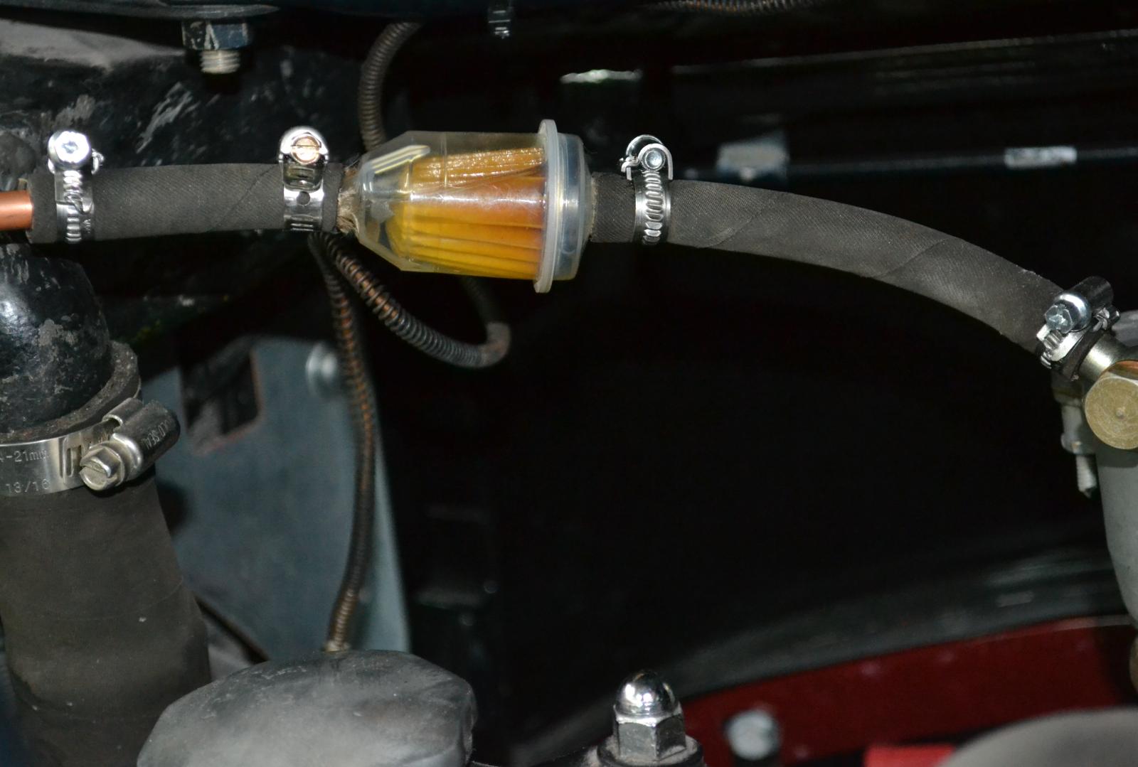 הפעלתי מחדש את המשאבה – והיא שבה ומילאה בזריזות את הקרבורטור, והשתתקה. אף שמץ של בועת אוויר לא נראה. פילטר הדלק בכניסה לקרבורטור התמלא בדלק שנשאר בו גם שעות לאחר הדממת המנוע,