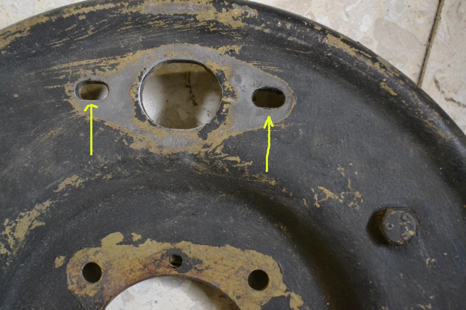 החריצים מסומנים בחיצים הצהובים. מכונאים רבים לא היו מודעים לכך בזמנו ונהגו להדק את ה"משאבה המכנית" בחוזקה לתושבת, והתוצאה היתה בלימה גרועה ומסוכנת. ההידוק הנכון נעשה באופן הבא: סוגרים את אומי ההידוק עד נעילה ואז משחררים אותם בצעדים קטנים עד שהמשאבה נעה בחופשיות מצד לצד. רובר ממליצים לסמן בגיר את גבולות התנועה ולוודא שהם לפחות 1/4 אינץ' (כ 6 מ"מ). שימו לב שהמשטח עליו נעה המשאבה מצד לצד צריך להיות נקי, חלק, ולא צבוע – אפילו אם צביעה בשחור בוהק גוררת תמיד אוטומטית מילות התפעלות מהסוג "מדהים, אין מילים". ובאמת עדיף למשחו בשכבה דקיקה של משחת סיכה.