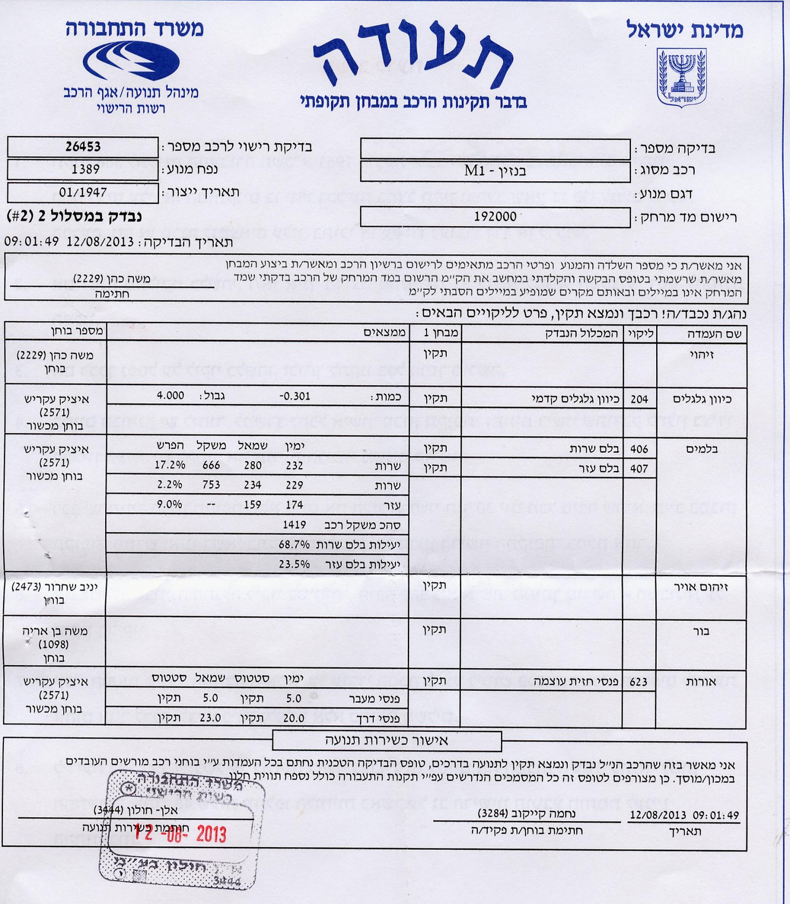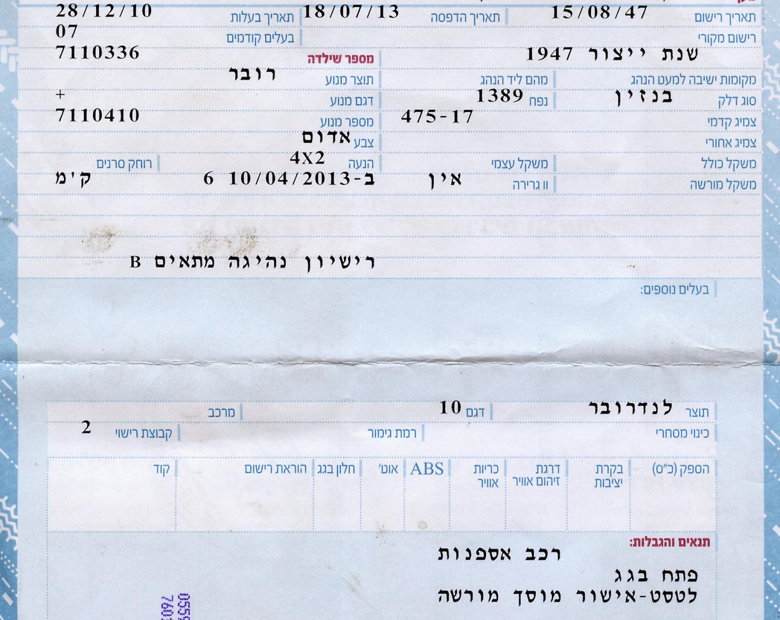קיבלתי רשיון מתוקן, ובאותה הזדמנות גם הרשיון לשנת הרישוי הבאה. עכשיו 26-453 בשל לגשת לטסט הבא.